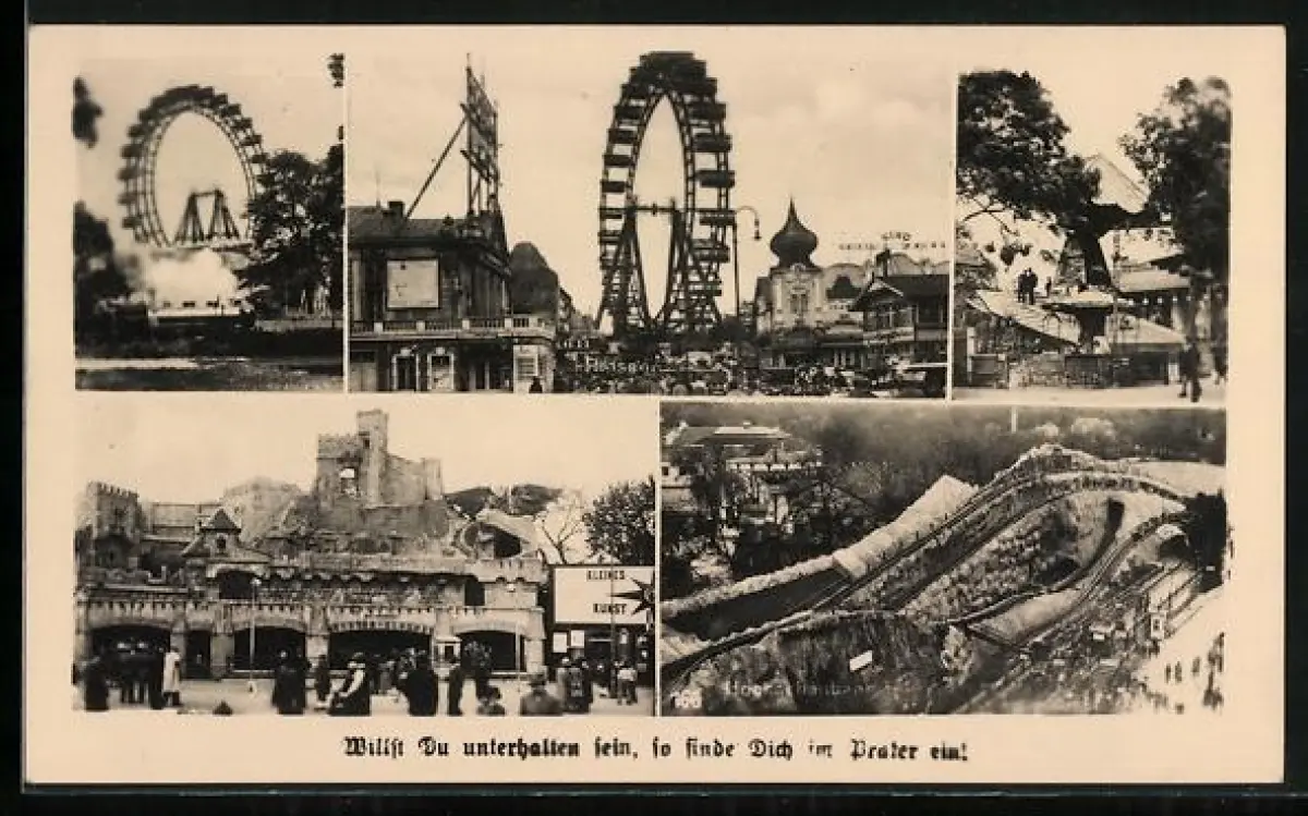 AK Partien vom Wiener Prater, Riesenrad und Hochschaubahn