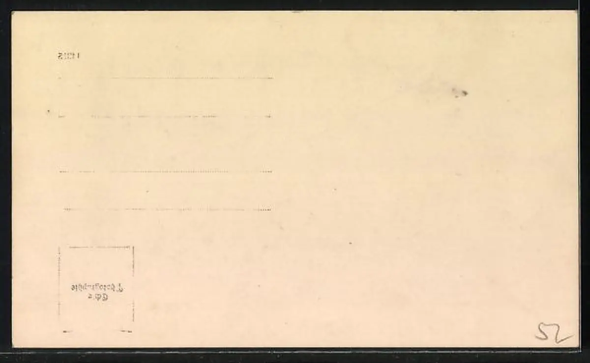 Personenbezogene Daten auf der Rückseite der Karte wurden durch blauen Textmarker unkenntlich gemacht. Die blauen Stellen sind auf die Vorderseite durchgeweicht und wirken sich negativ auf das Postkartenfoto aus