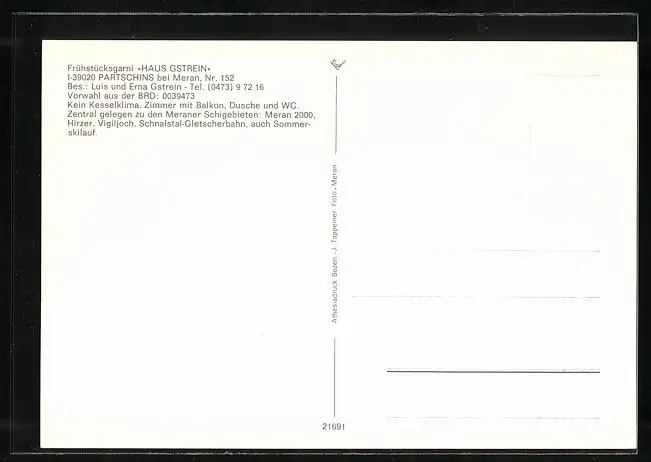 AK Partschins bei Meran, Garni Haus Gstein, Ortsansicht, Teilansicht Meran