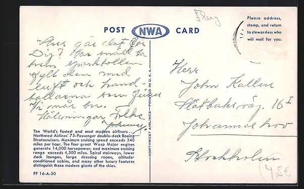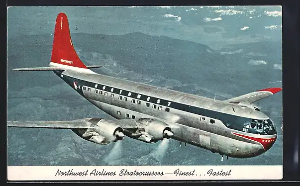 AK Passagierflugzeug des Types Stratocruisers der Northwest Airlines in der Luft