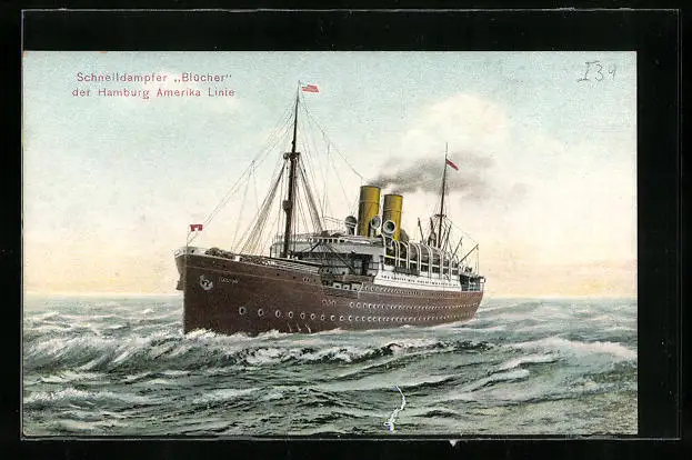 AK Passagierschiff Blücher der H.-A.-Linie in stürmischer See