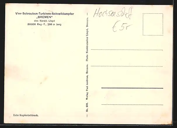 AK Passagierschiff Bremen des Norddeutschen Lloyd