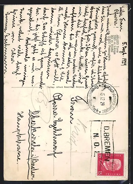 gelaufen 1929, Eckknick li. oben, Bugspur unten, guter Zustand