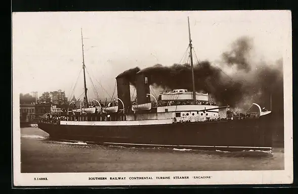 AK Passagierschiff Engadine unter Dampf vor Küste, Southern Railway Continental