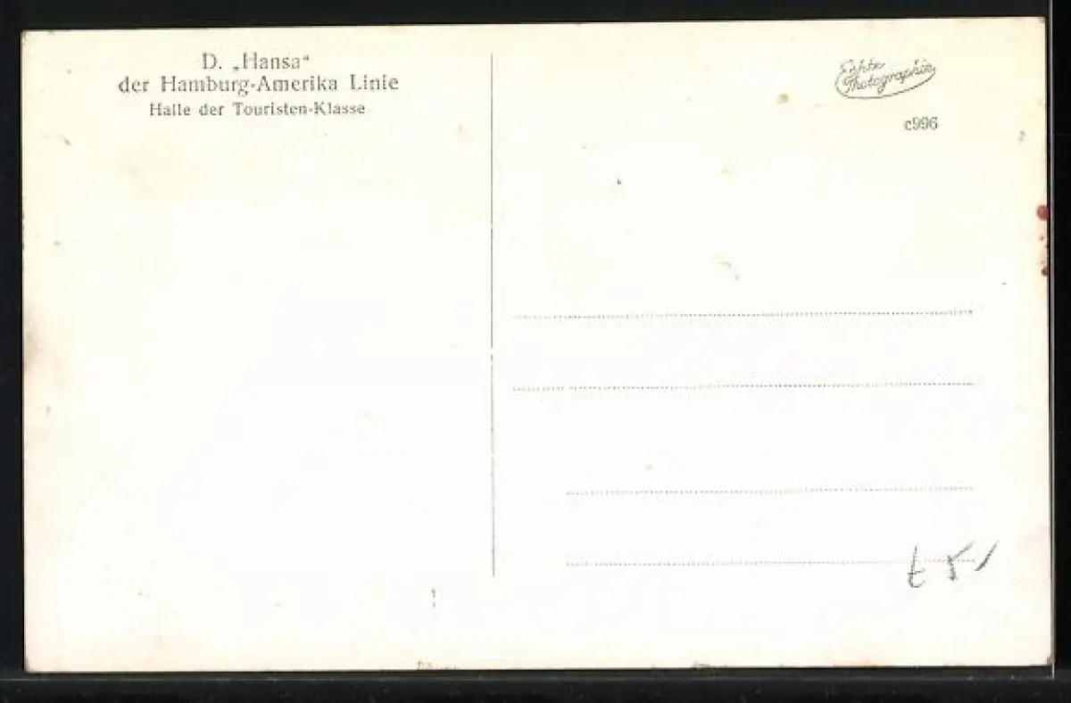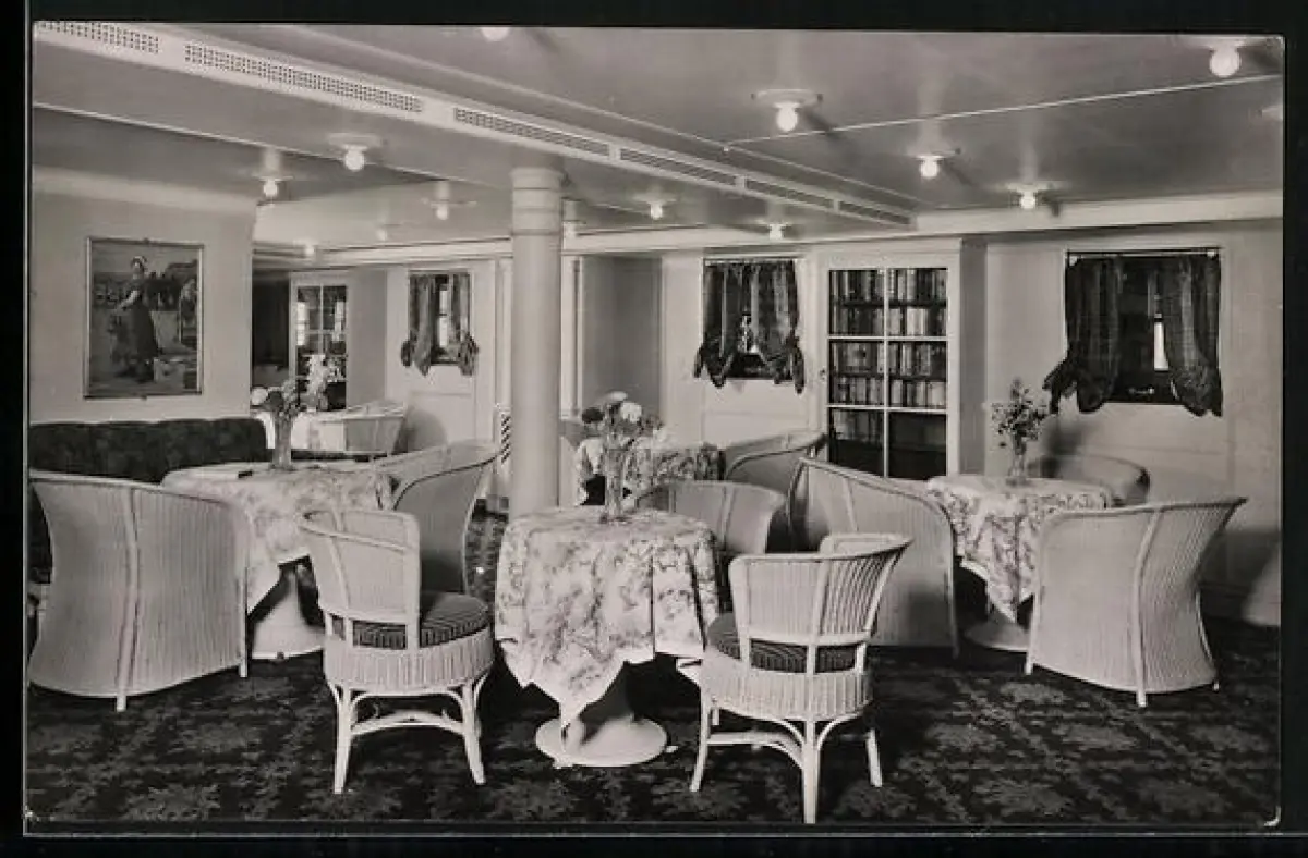 AK Passagierschiff Hansa der Hamburg-Amerika Linie, Halle der Touristen-Klasse