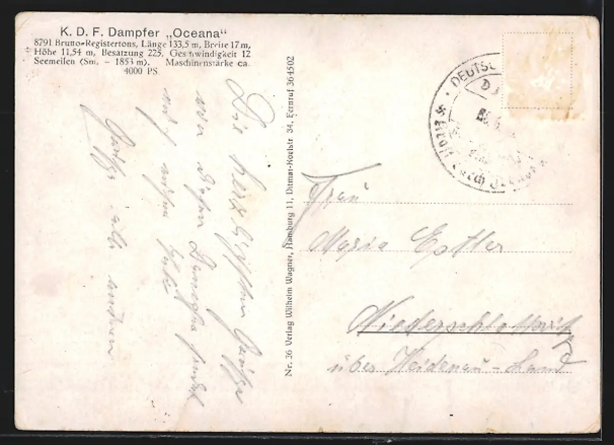 AK Passagierschiff K. d. F. Dampfer Oceana im Hafen