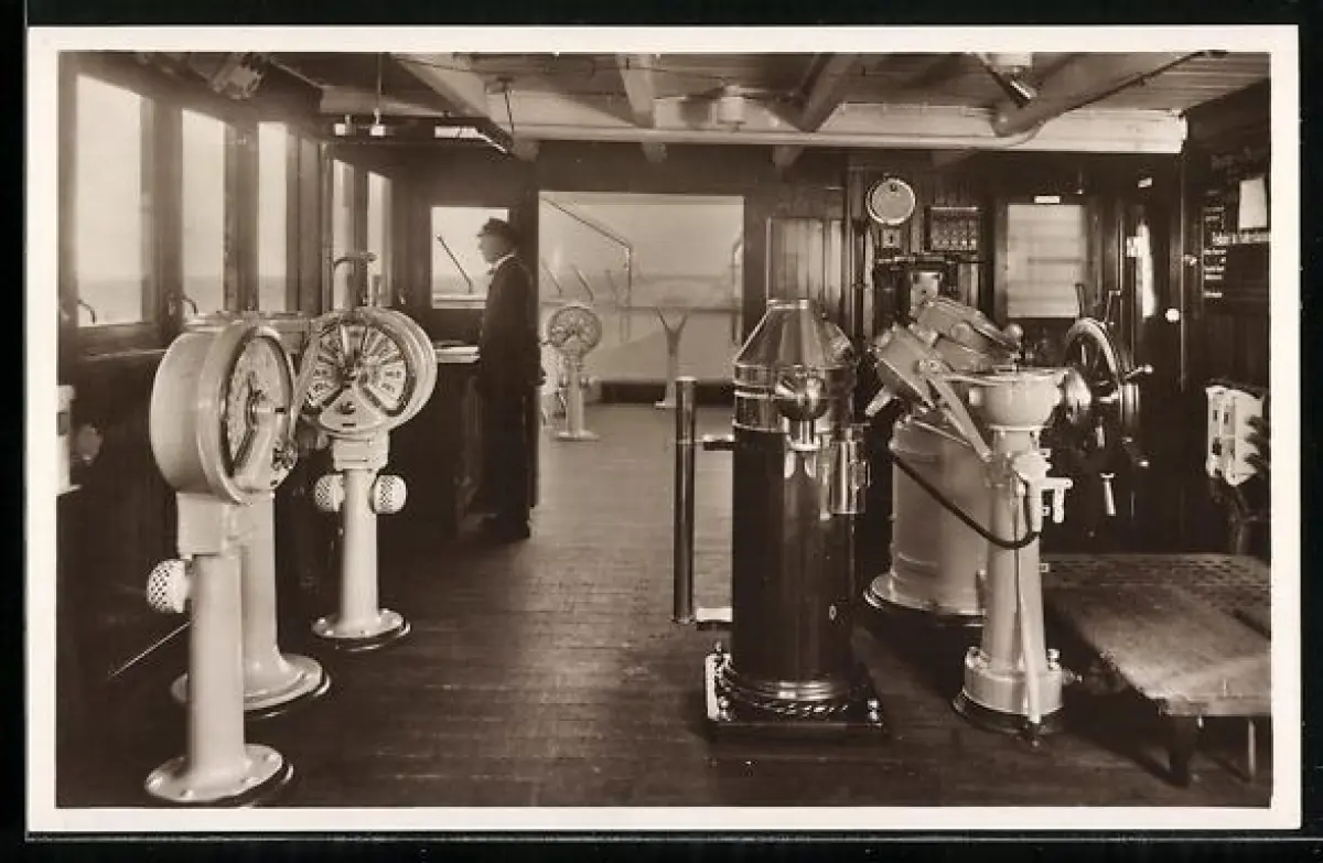 AK Passagierschiff M. S. Monte Olivia der Hamburg-Süd, Kommandobrücke