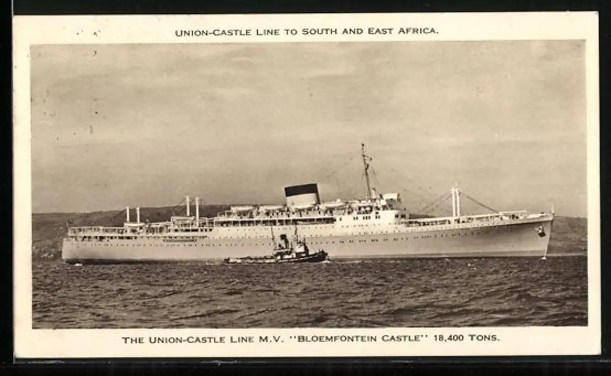 AK Passagierschiff M. V. Bloemfontein Castle mit Schlepper