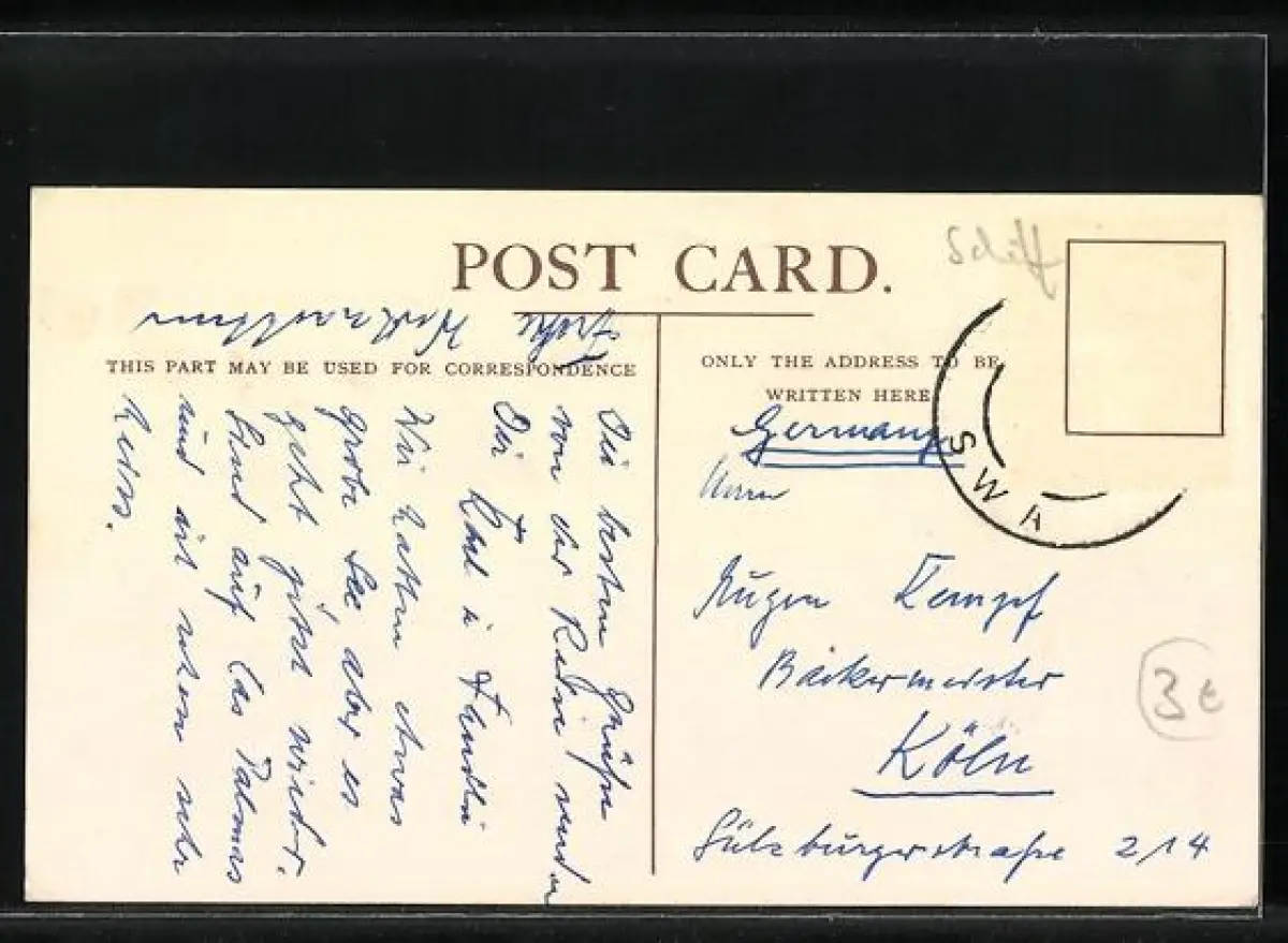 alte Ansichtskarte, gelaufen, Briefmarke entfernt, guter Zustand
