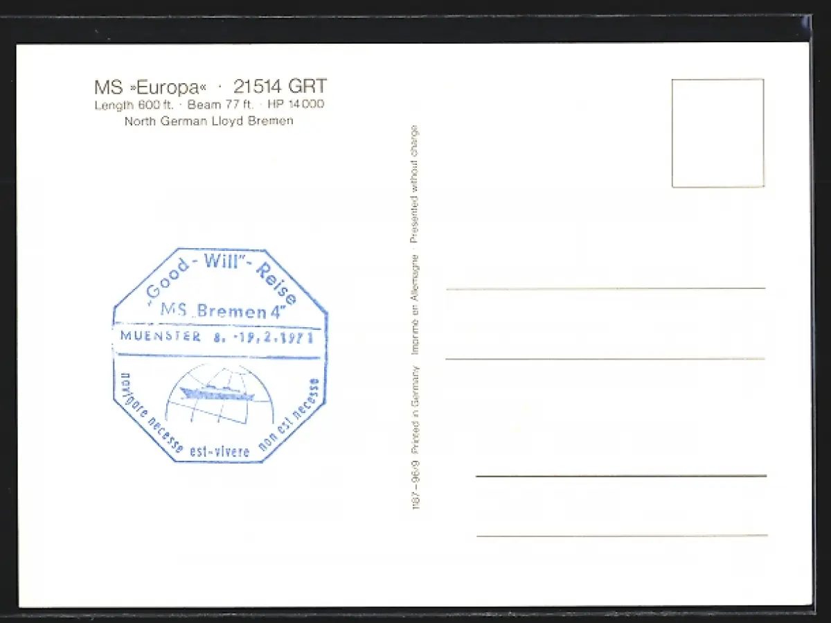 AK Passagierschiff MS Europa des Norddeutschen Lloyd
