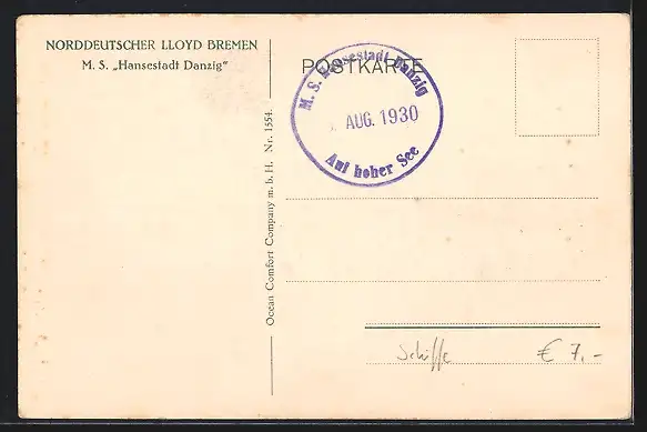 AK Passagierschiff M.S. Hansestadt Danzig, Reederei Norddeutscher Lloyd Bremen