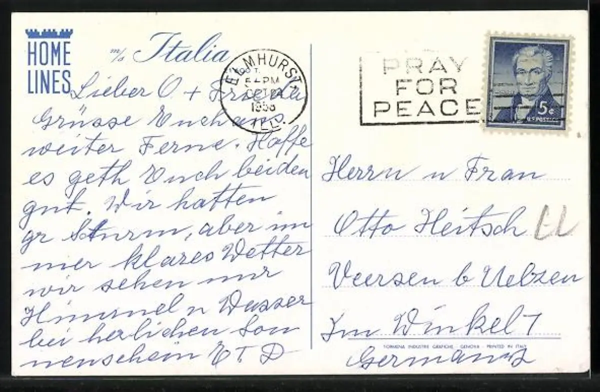 AK Passagierschiff MS Italia der Home Lines auf hoher See