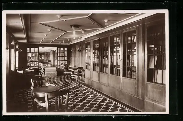 AK Passagierschiff M.S. Monte Cervantes der Hamburg-Amerika Linie, Schreib- und Bücherei-Zimmer mit Rauchsalon