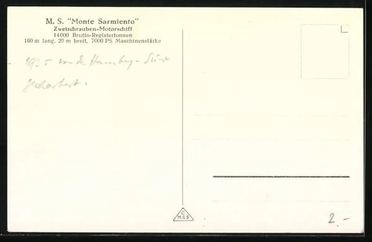 AK Passagierschiff Monte Sarmiento, Backbordseite