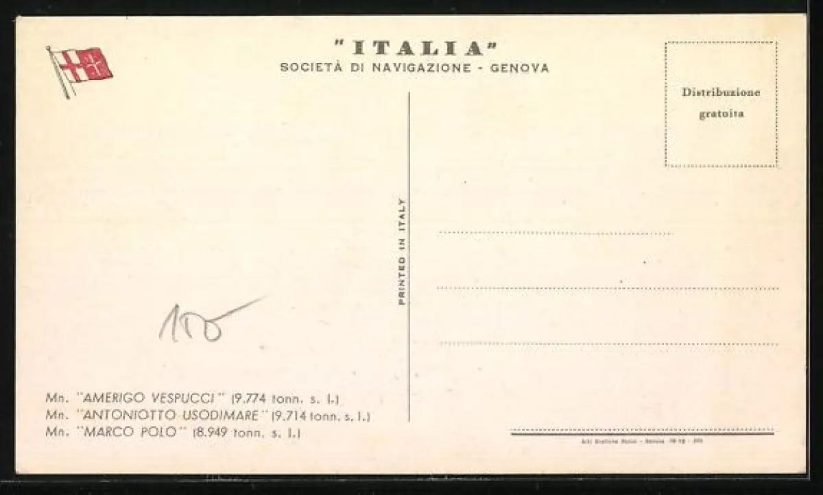 AK Passagierschiff Motorschiff Amerigo Vespucci der Reederei Italia auf hoher See