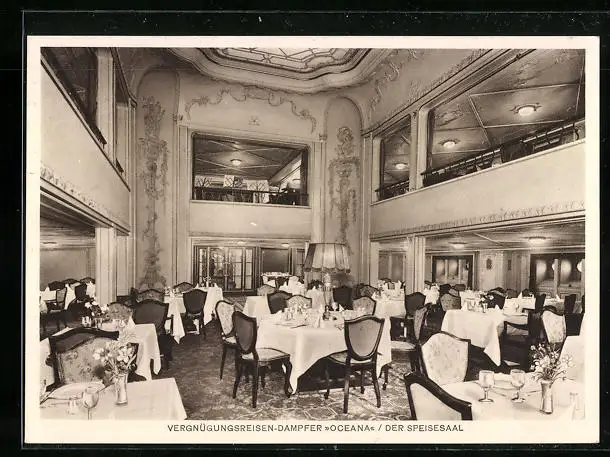 AK Passagierschiff Oceana der H.-A.-Linie, Innenansicht des Speisesaals