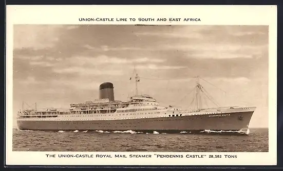 AK Passagierschiff Pendennis Castle auf See, Union-Castle Liner