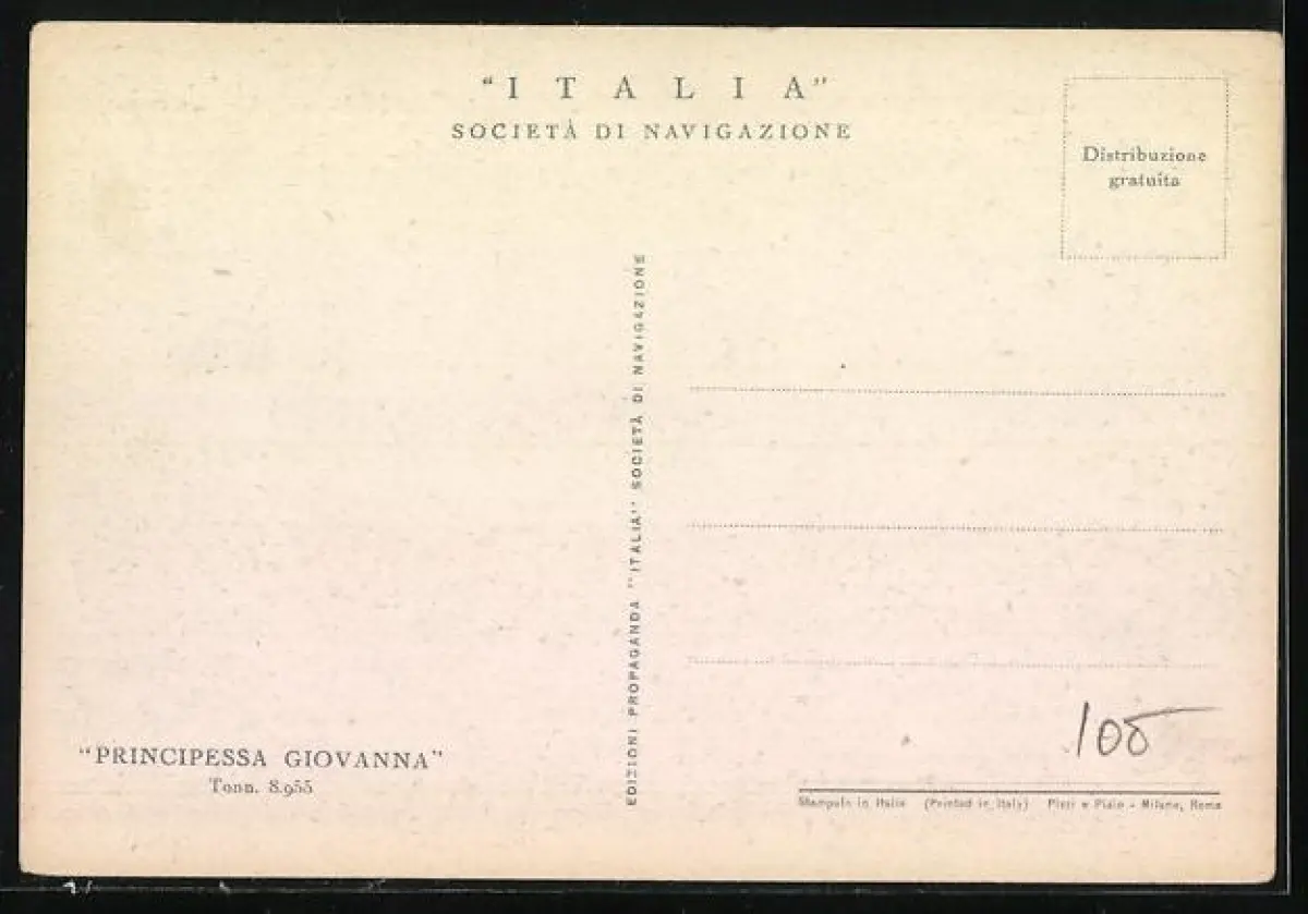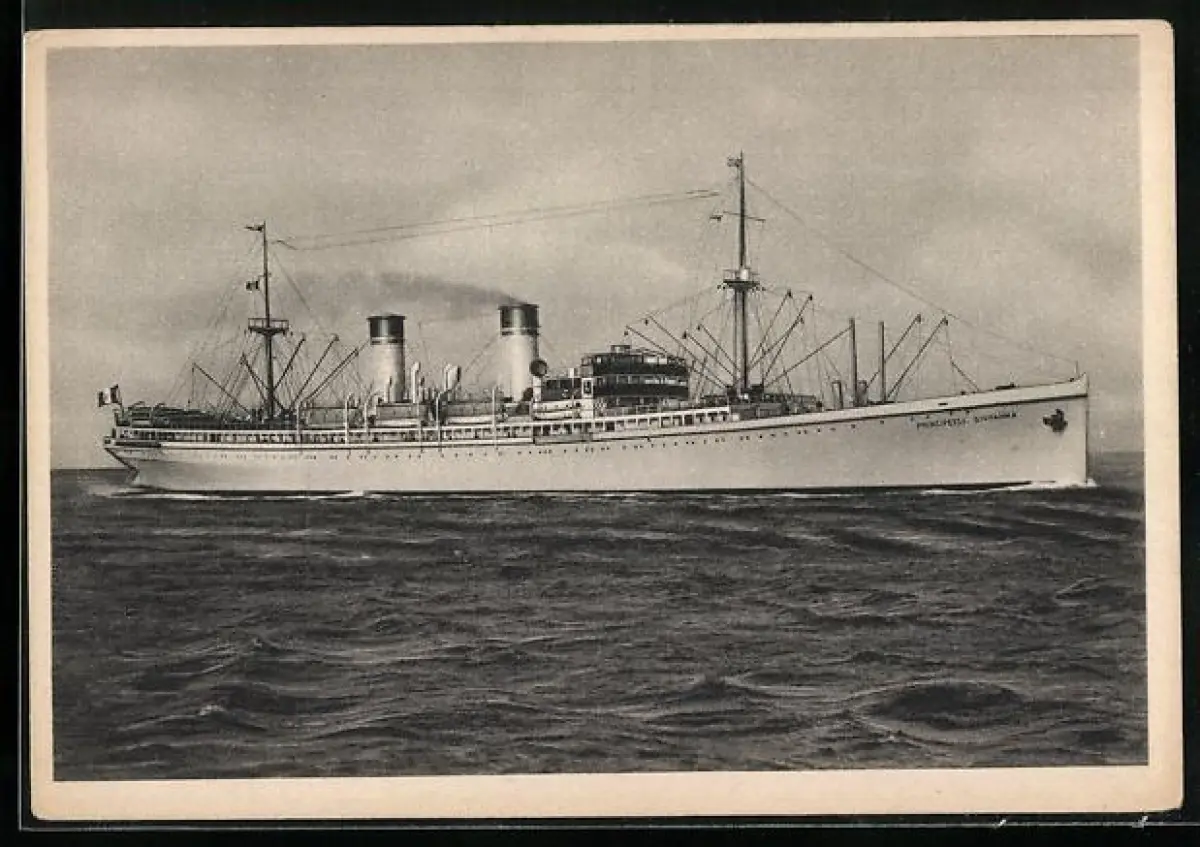 AK Passagierschiff Principessa Giovanna auf See der Reedrei Italia