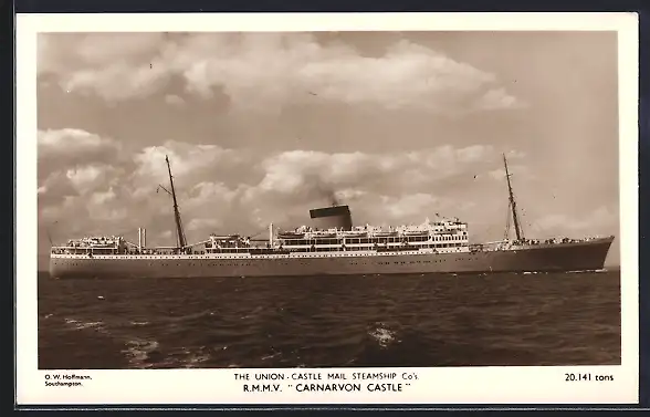AK Passagierschiff R.M.M.V. Carnarvon Castle auf hoher See, The Union Castle Mail Steamship