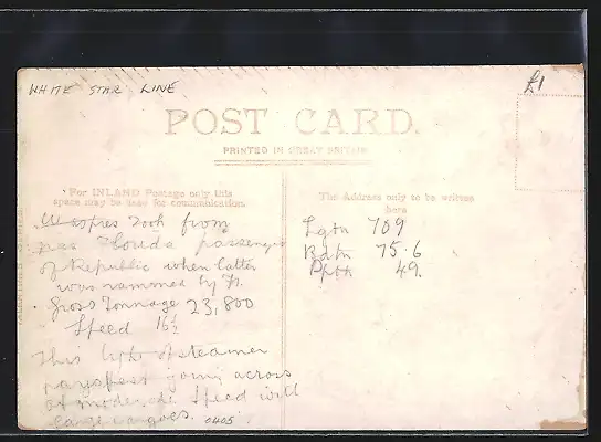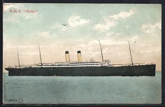 AK Passagierschiff RMS Baltic auf See, White Star Liner