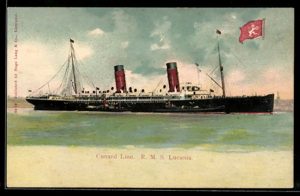 AK Passagierschiff R.M.S. Lucania der Cunard Line, Reederei-Flagge