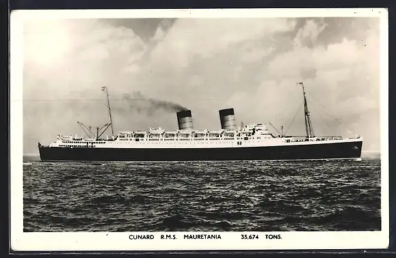 AK Passagierschiff RMS Mauretania auf dem Meer, Cunard Liner