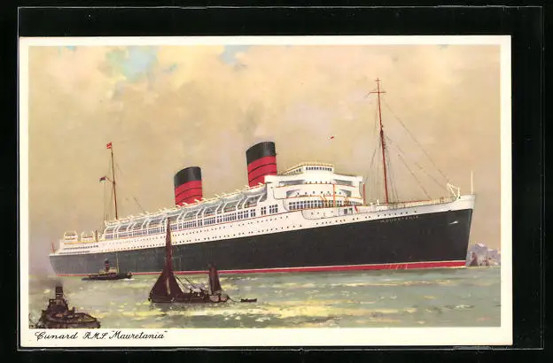 AK Passagierschiff RMS Mauretania der Cunard Line sticht in See