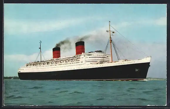 AK Passagierschiff RMS Queen Elizabeth der Cunard Line nahe der Küste