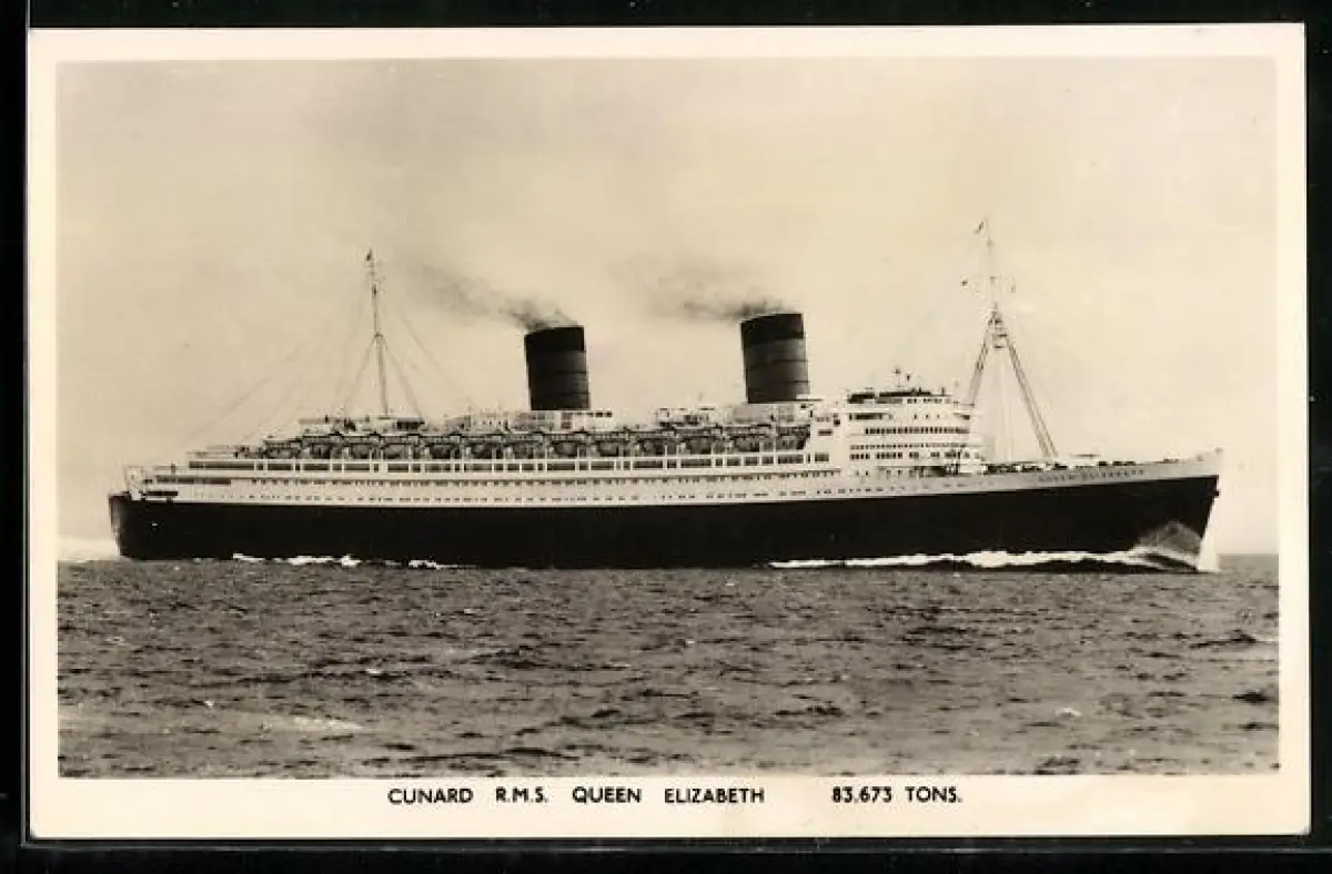 AK Passagierschiff R.M.S. Queen Elizabeth in voller Fahrt
