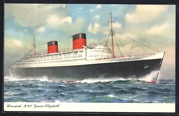 AK Passagierschiff RMS Queen Elizabeth pflügt durch das Meer, Cunard Line