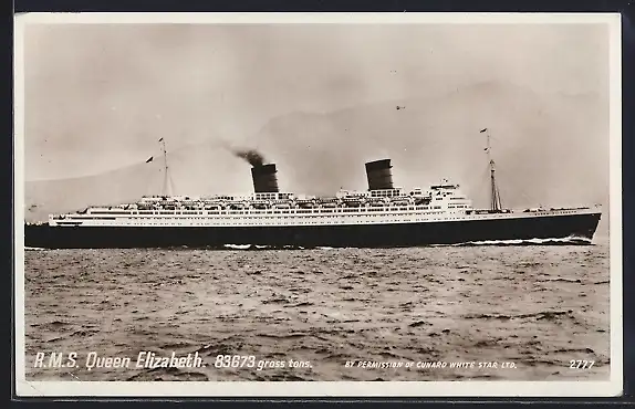 AK Passagierschiff RMS Queen Elizabeth vor der Küste, Cunard White Star Line