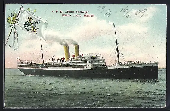 AK Passagierschiff R.P.D. Prinz Ludwig vom Nordd. Lloyd