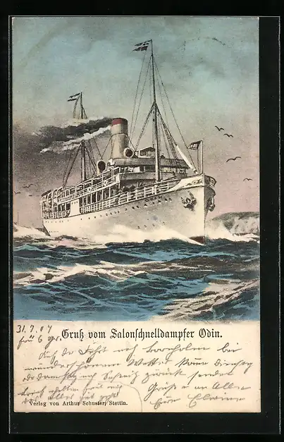 AK Passagierschiff Salonschnelldampfer Odin auf See