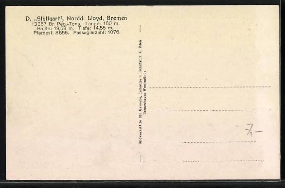 AK Passagierschiff Stuttgart des Norddeutschen Lloyd