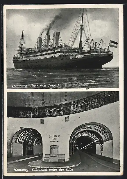 AK Passagierschiff auf der Elbe, darunter der Elbtunnel