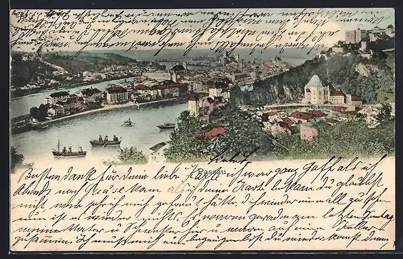 AK Passau, Blick auf den Ort mit Flusspartie