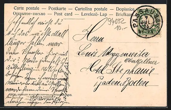 alte Ansichtskarte, gelaufen 1905, Stempelspur, guter Zustand