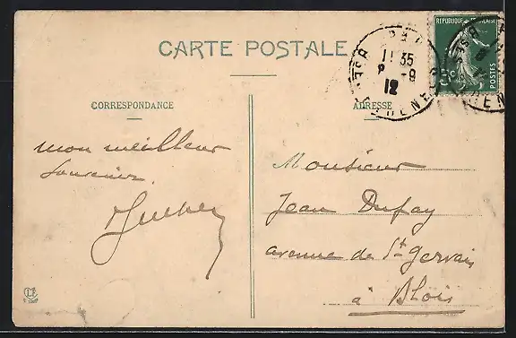 gelaufen 1912, Einriss unten re., Eckknick oben re., Stempelspur, guter Zustand