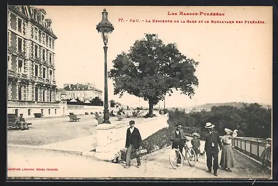AK Pau /Basses-Pyrénées, La Descente de la Gare et le Boulevard des Pyrénées
