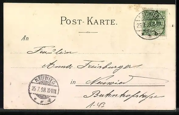 alte Ansichtskarte, gelaufen 1898, Stempelspur, guter Zustand
