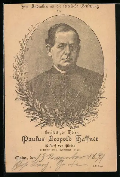 AK Paulus Leopold Haffner, Bischof von Mainz, Gest. 1899