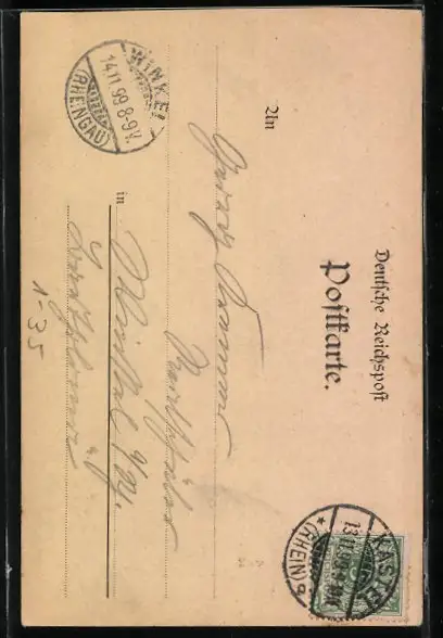 alte Ansichtskarte, gelaufen 1899, Eckknicke re. unten u. li., guter Zustand