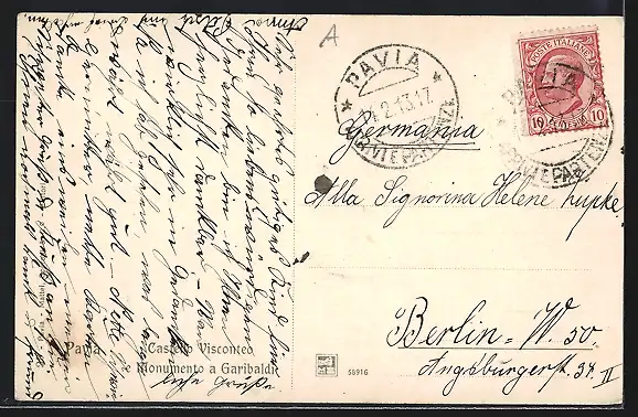 AK Pavia, Castello Visconteo, Monumento a Garibaldi