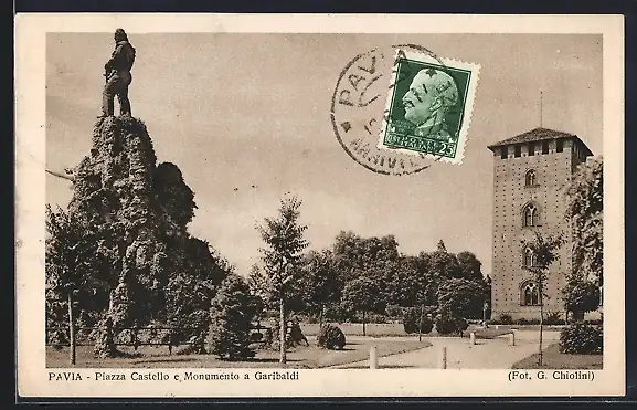 AK Pavia, Piazza Castello e Monumento a Garibaldi