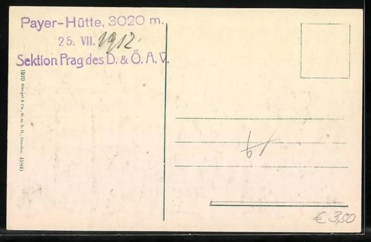 AK Payer-Hütte, Tabrettahütte mit Payerhütte und dem Ortler