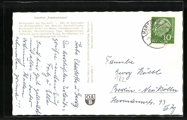 AK Pechgraben b. Bayreuth, Gasthof Frankenwald, Inh. N. Egermann
