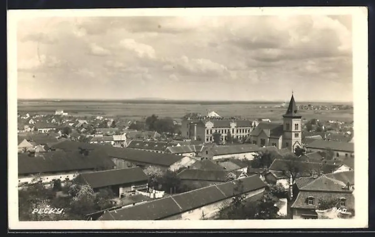 AK Pecky, Über die Dächer der Stadt mit Umland