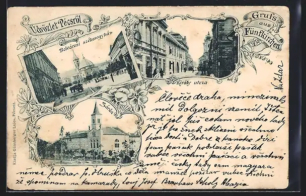 AK Pécs, Belvárosi székescgyház, Zárda, Király utcza