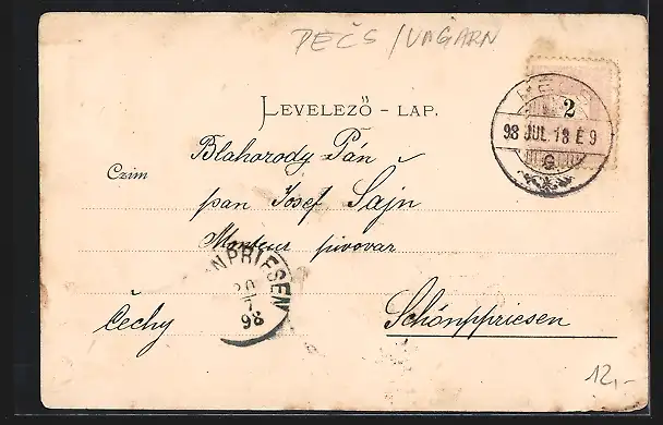 alte Ansichtskarte, gelaufen 1898, guter Zustand