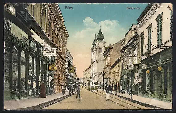AK Pecs, Kiraly utca, Strassenbahn